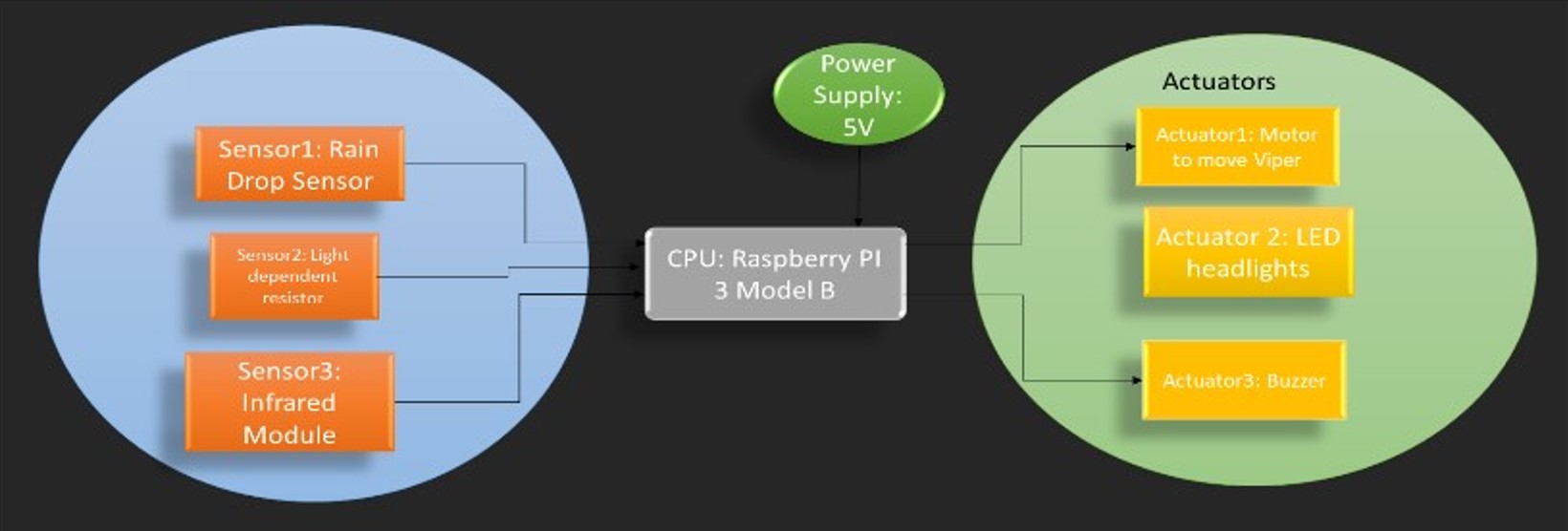 To create a simple model of an autonomous car with features like object dedtection, automatic headlights, and automatic wipers.